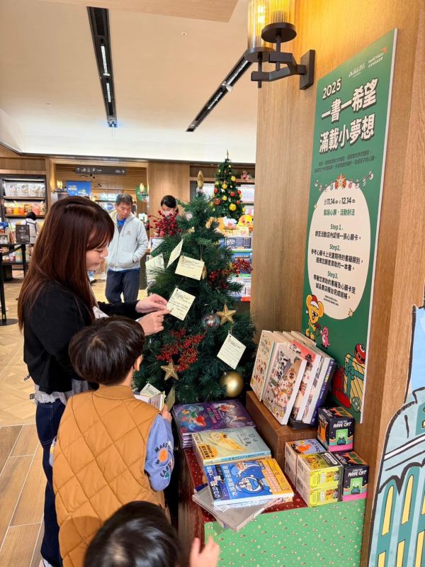 走進誠品門市,今年的「一書一希望」公益募書活動讓聖誕樹成為最溫暖的風景。枝枒上掛的不是傳統禮物,而是一張張充滿童心的「書籍認購卡」,上頭寫著孩子們的小心願。此次南區五間門市共募得270本書籍,將送至台南、高雄與屏東的孩子手中。孩子們的願望單純又可愛。