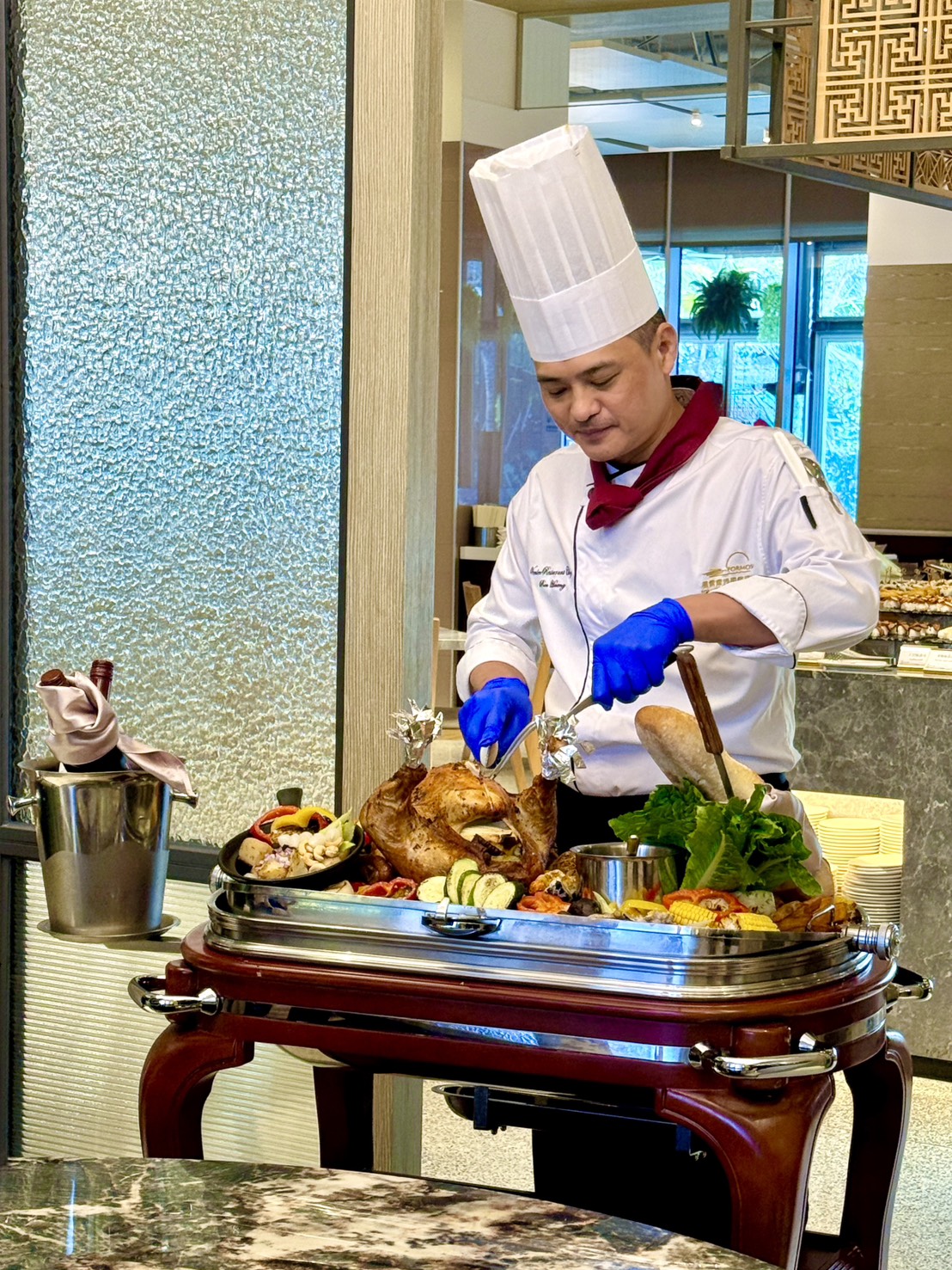 ▲12月24-25日威尼斯餐廳火雞桌邊服務-主廚片切。(圖/福爾摩沙酒店提供)