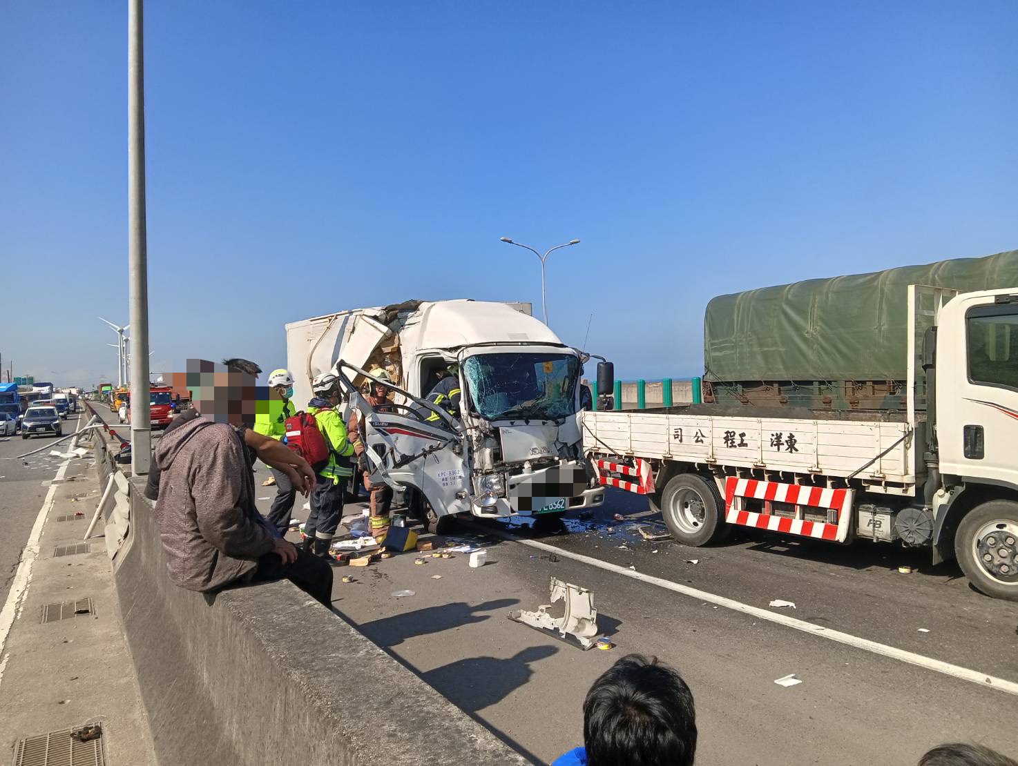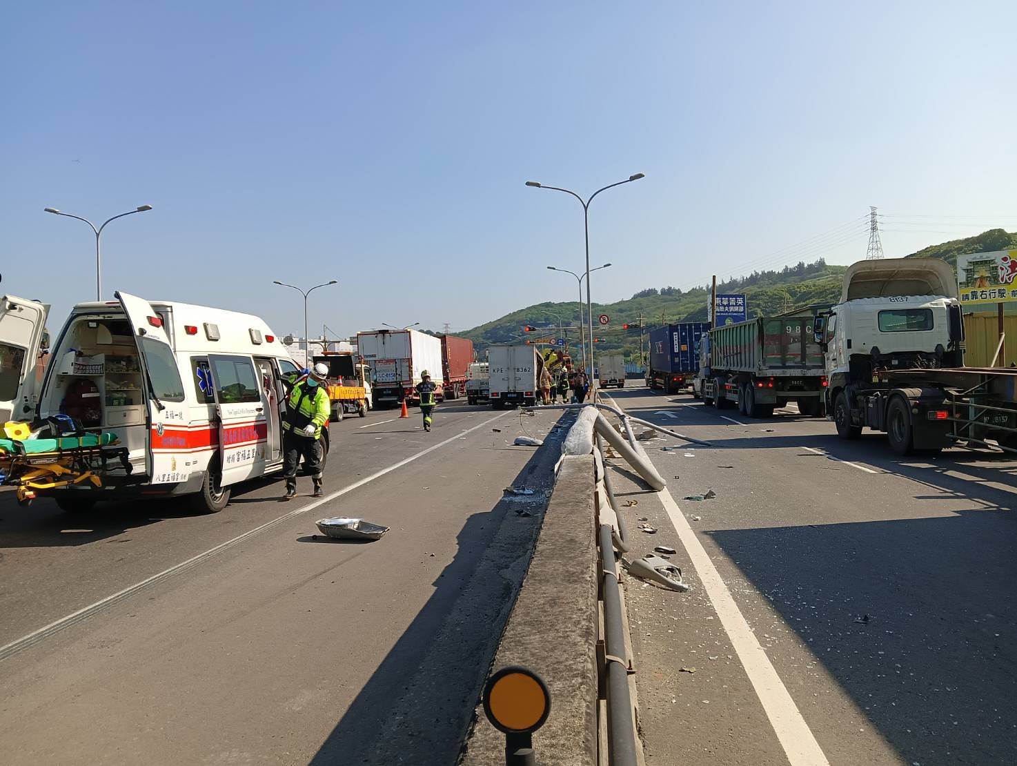 【Lai傳媒、記者爆料網/周庭慶/新北報導】台61線西濱快速道路昨(16)日發生小貨車失控追撞事故!上午10時50分,24歲呂姓手駕駛小貨車沿台61線往八里方向行駛,行經台61線北上16.6K處先擦撞分隔島,再追撞前方37歲羅姓男子駕駛之大貨車,羅男大貨車遭撞後又波及前方34歲李姓男子駕駛之大貨車。