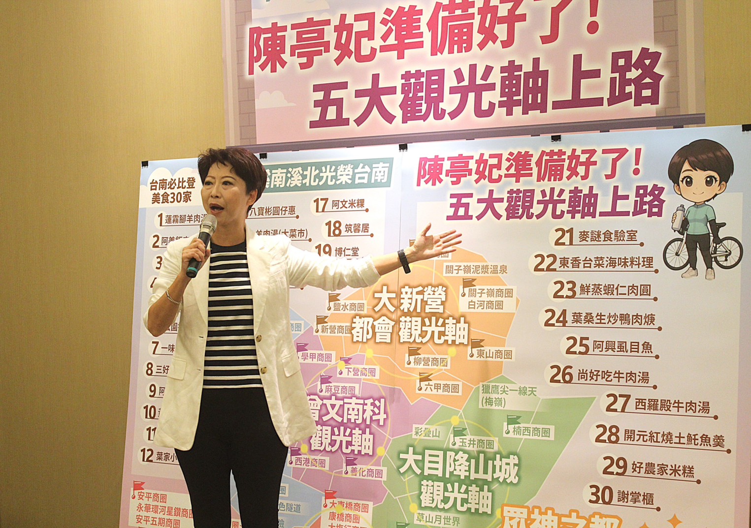 談到台南的觀光發展,民進黨臺南市長參選人、立法委員陳亭妃認為,臺南的觀光價值從來不在於「再打造多少新景點」,而在於如何把早已存在的山海特景、於生活中的美食文化、古蹟人文、宗教信仰與商圈產業,系統性地串聯起來。所以她提出「五大觀光軸」的核心整體策略,強調台南不能只靠單點景點吸引人潮,而是要依山、海、平原的地理條件,整合宗教文化、農漁特產、商圈經濟與在地生活,讓觀光成為帶動產業與地方經濟,以及留住年輕就業的重要引擎。