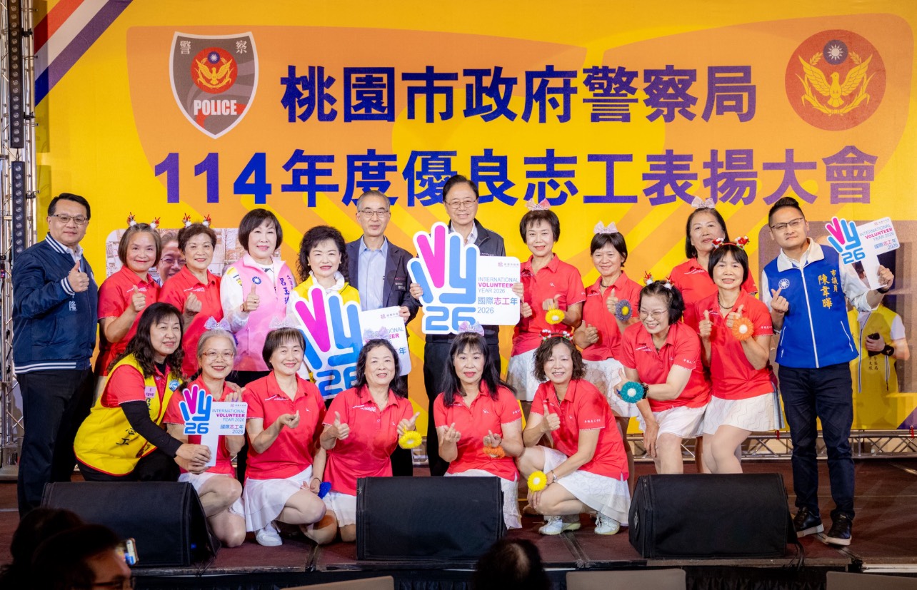 張市長指出,志工大隊往往是市民走進警局時接觸到的第一線人員。無論在分局或派出所,只要看到志工夥伴主動服務、熱心協助,就能讓民眾在洽公過程中感到安心與信任。感謝志工夥伴一年來的辛勞付出,期盼在2026年「志工年」持續發揮影響力,為桃園治安與公共服務注入穩定而溫暖的力量,讓警察局成為市民最堅實的依靠。