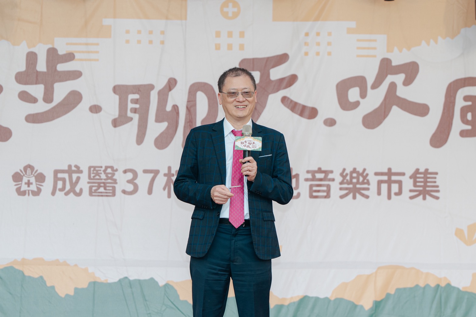成大醫院李經維院長於活動中特別向全體同仁致意,感謝大家面對繁重業務,依然以耐心與溫度展現專業服務。並表示,舉辦草地音樂市集活動的初衷,就是希望提供一個屬於同仁的「放鬆時刻」,讓大家能適時放下忙碌,用音樂、市集與笑容重新充電並陪伴親友。
