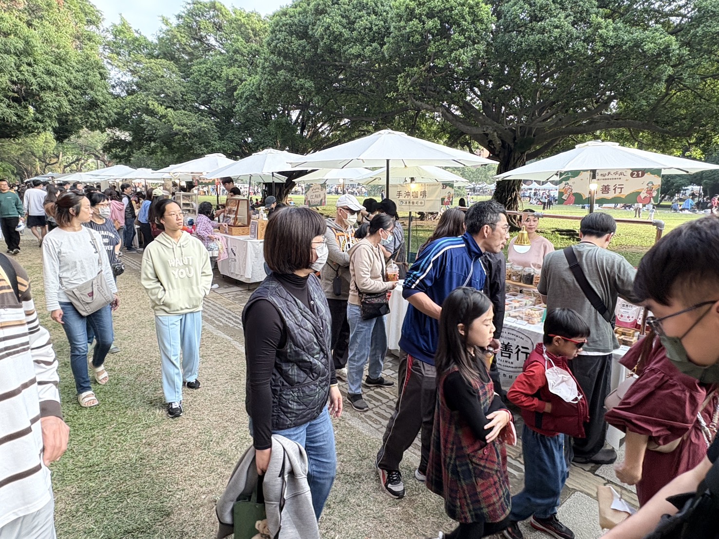 成大醫院於今(20)日下午,在成功大學榕園再度舉辦「散步.聊天.吹風 成醫37榕園草地音樂市集」活動。在冬日暖陽下,以溫暖、放鬆的氛圍邀請同仁與親友度過療癒午後。今年同樣匯集多達百攤市集與多組精彩演出,包括知名藝人卡司與成大醫院「創藝達人」同仁表演,展現醫院豐富多元的人文能量及文化素養。成大醫院也藉此活動,向辛勤付出的同仁獻上最真摯的感謝。