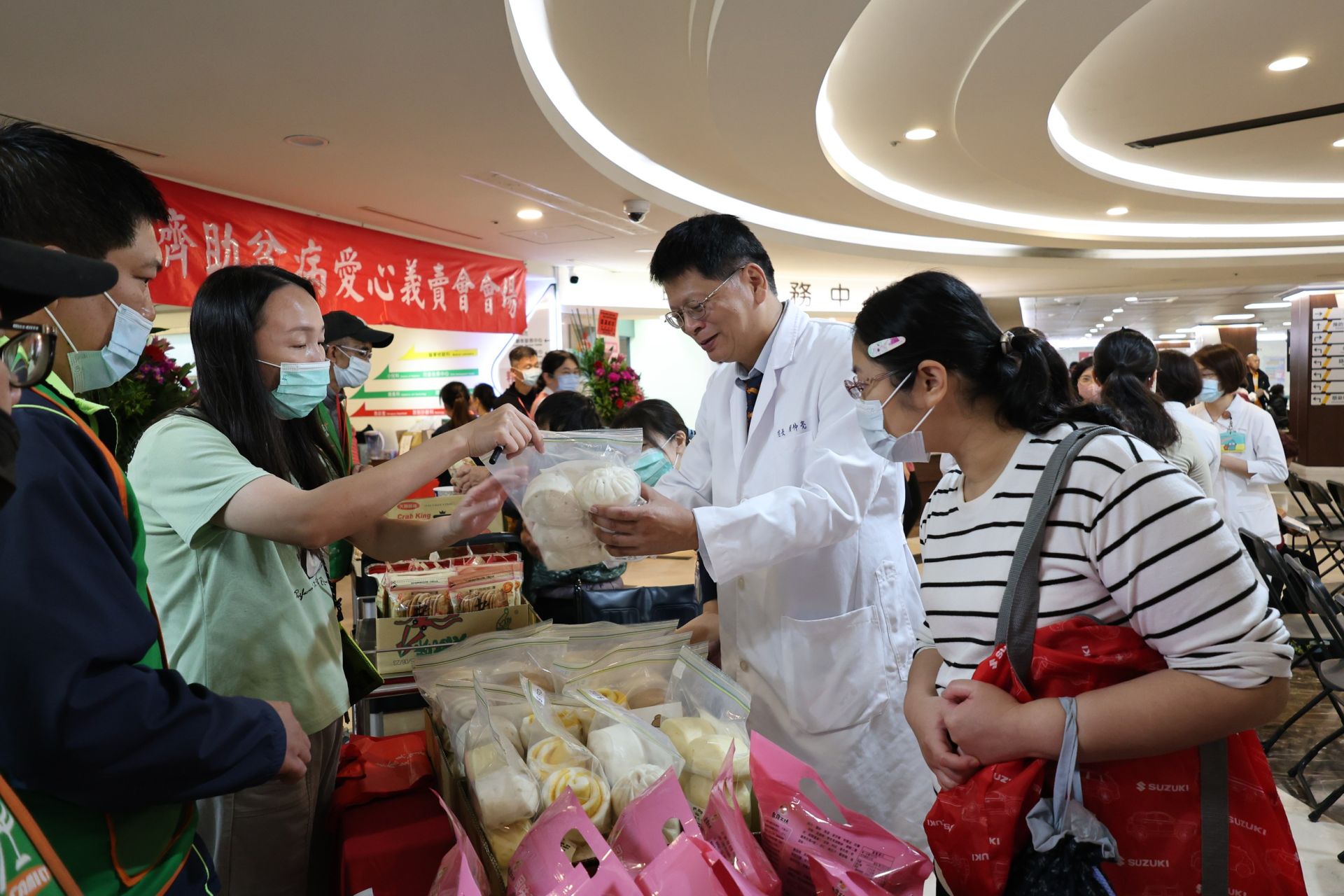圖說:為慶祝部彰醫院57年慶 現場義賣捐救助基金 包括醫師及民眾都踴躍認購