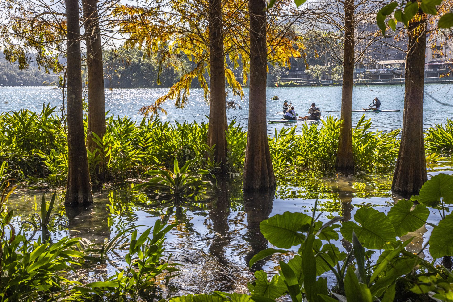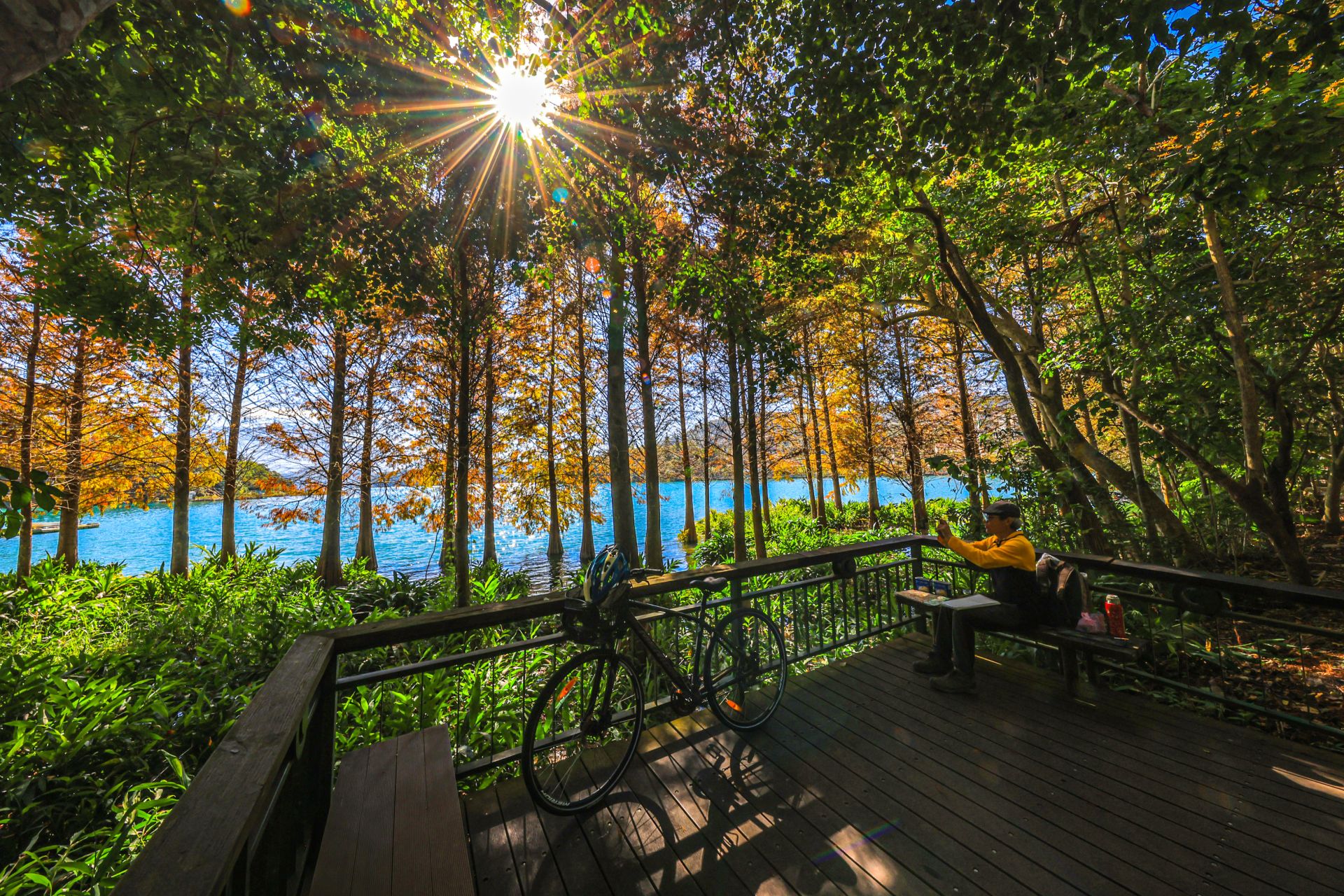 【視傳媒記者 趙明慧/南投報導】12月中下旬,冷鋒未深、陽光正好,正是走訪中台灣山水的好時節。一早的日月潭,湖畔林蔭間灑落的冬陽穿透樹梢,在木棧平台上綻放成放射狀光芒。湛藍湖水與轉黃的落羽松相互映照,靜謐而溫暖,單車與旅人停駐其間,勾勒出日月潭專屬的慢活節奏。