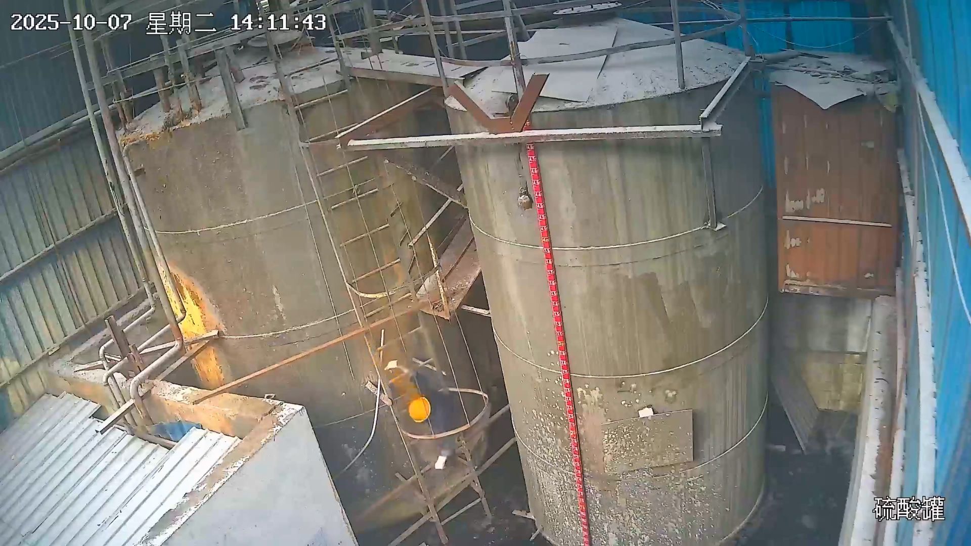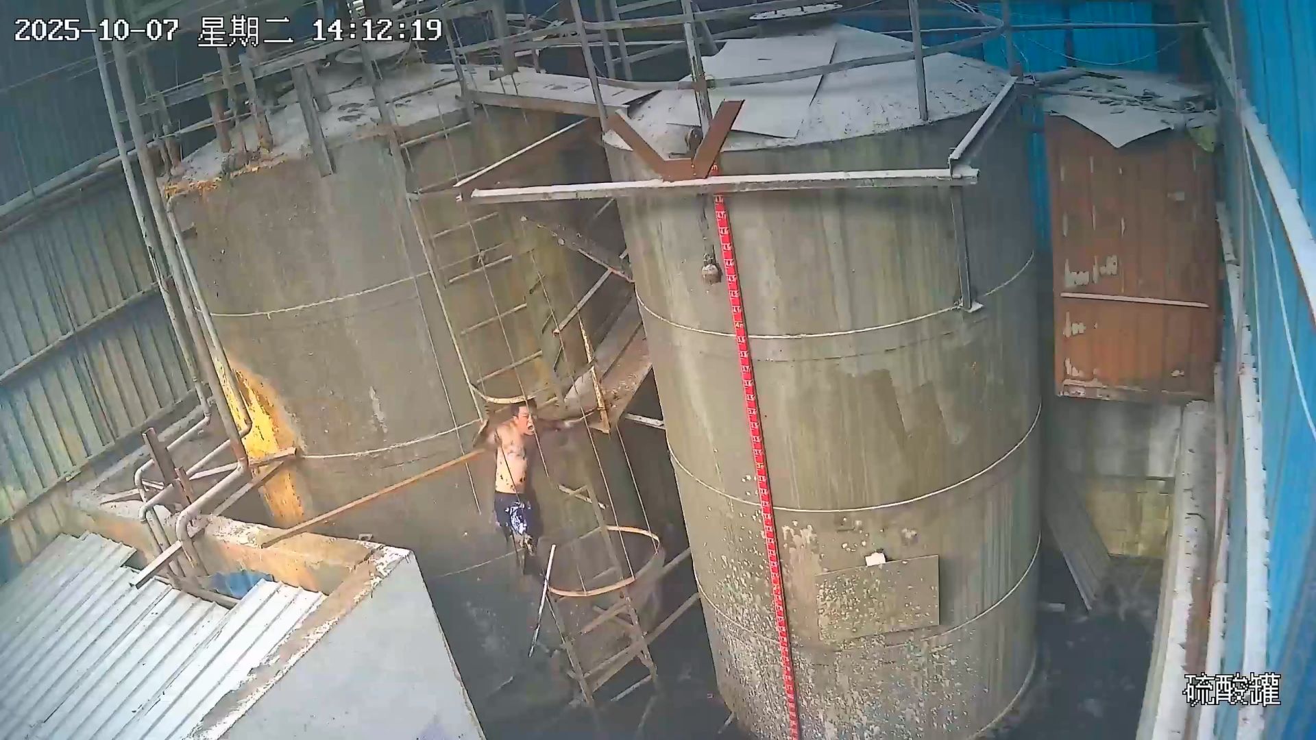 根據影片內容,10月7日四川攀枝花一處工廠工人,在硫酸罐區域檢查,爬樓梯的時候不慎墜落池中,隨後大聲尖叫爬出。