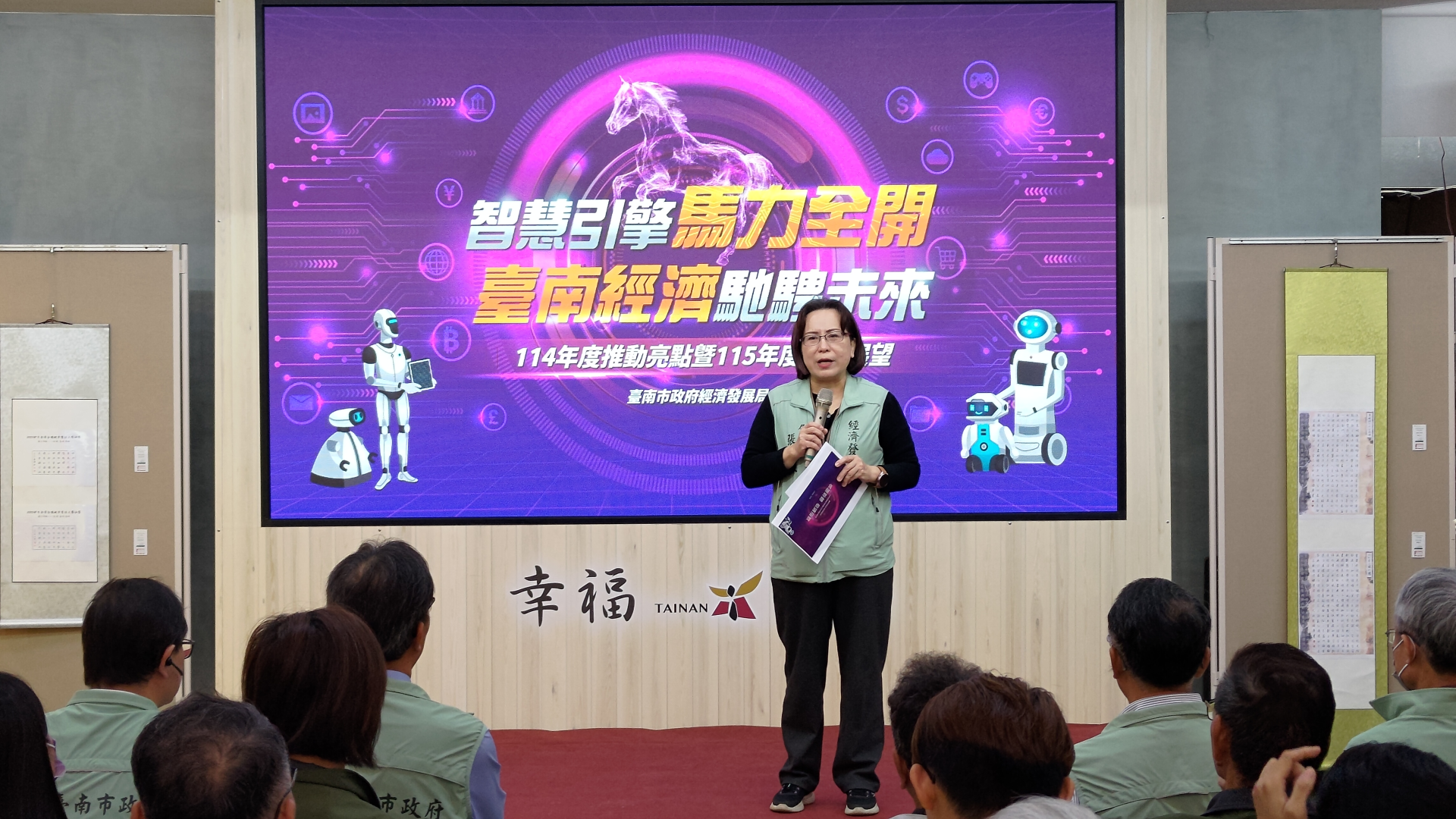 張婷媛局長最後表示,經發局在114年交出亮眼成績單,未來將持續以「生產智慧化、生態永續化、生活豐富化」為發展藍圖,打造具競爭力與幸福感的城市,讓臺南經濟持續奔騰,「『馬』尼攏總來!」