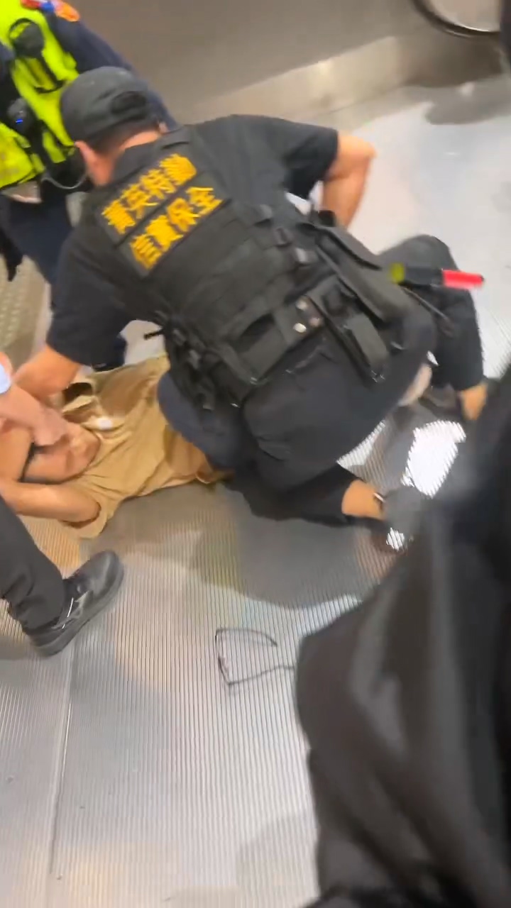影/男大鬧台北車站喊「我會傷人」 衝電扶梯逃跑!警噴辣椒水壓制