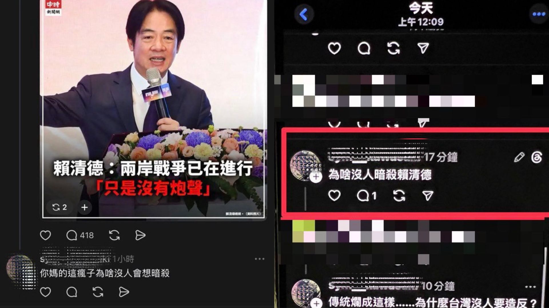 屏東警方日前接獲民眾檢舉,指出有特定帳號在社群平台《Threads》上多次發表涉及「暗殺總統」等恐嚇言論,內容引發社會不安。警方研判相關言論恐有擾亂社會秩序之虞,隨即將情資報請屏東地方檢察署檢察官指揮偵辦。