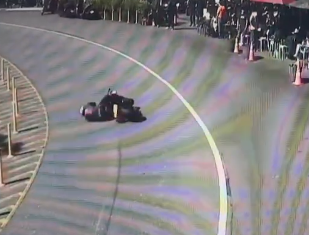 摔車畫面曝光!北宜公路財茂彎大型重機過彎摔車 撞路邊3車騎士受傷