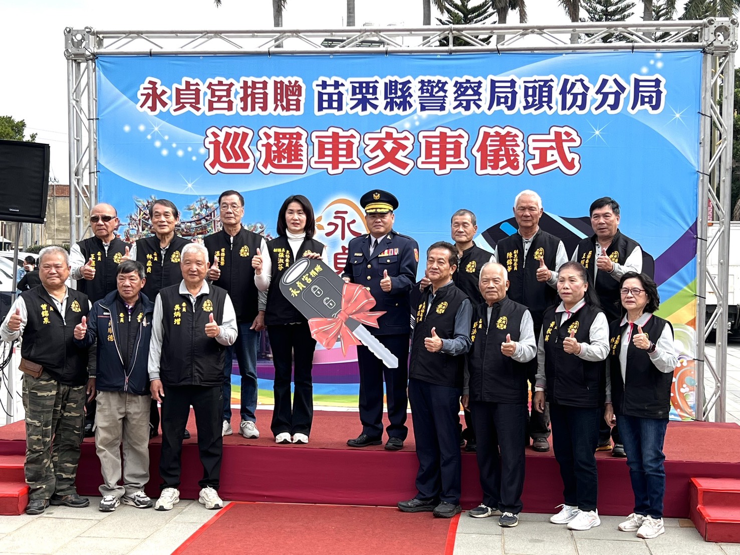 頭份永貞宮捐贈警用巡邏車 媽祖加持守護地方治安