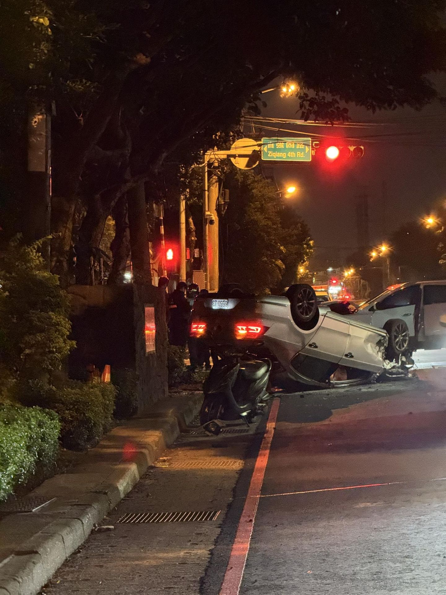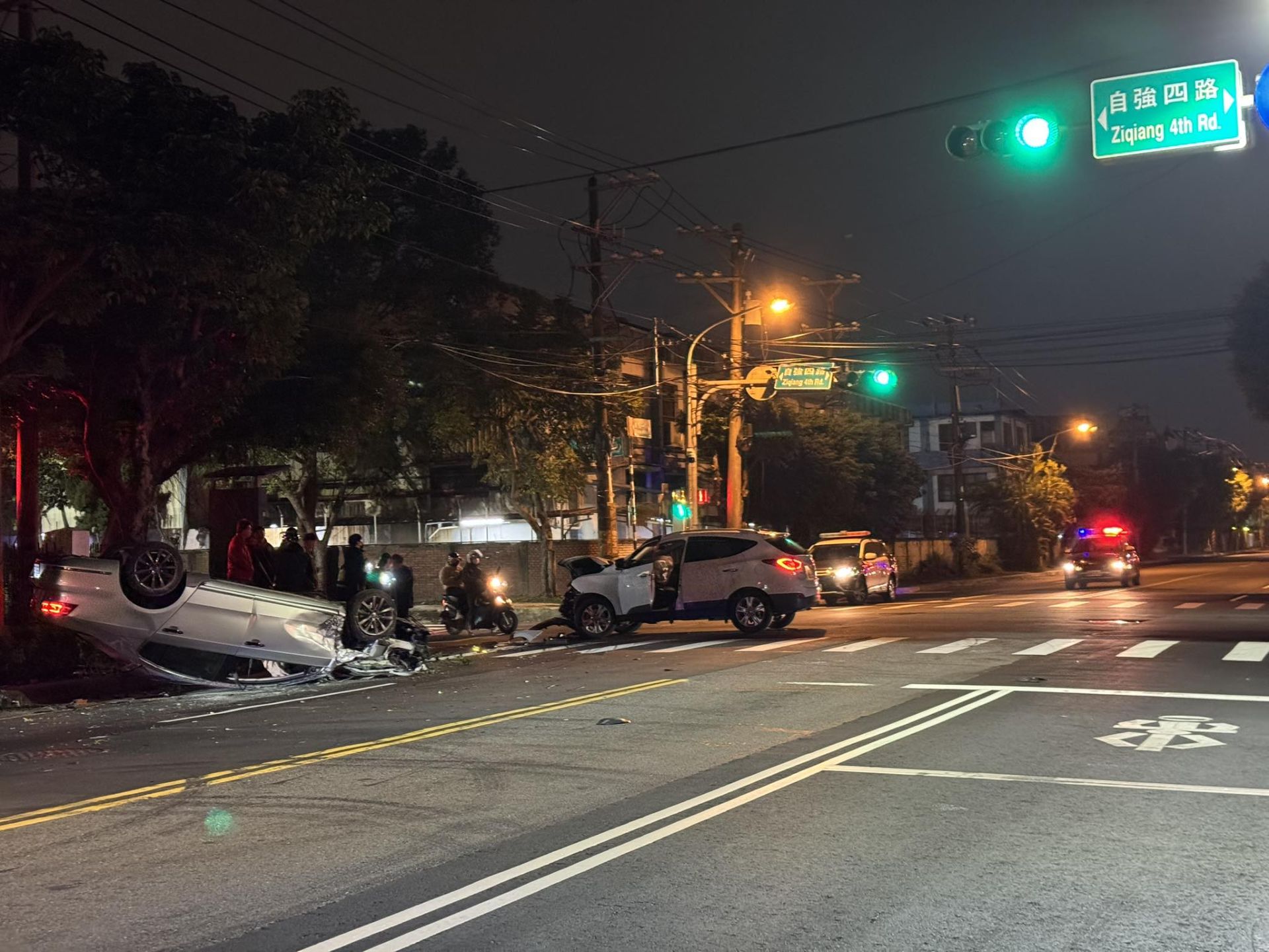 經了解,55歲王男駕駛自小客車沿自強一路(往自強二路方向)欲左轉自強四路時,與對向沿自強四路往自強六路直行之25歲鄧男駕駛之自小客車發生交通事故,致使鄧男車輛翻覆,雙方均受輕微擦挫傷,酒測值均為0,詳細肇事原因尚待釐清。