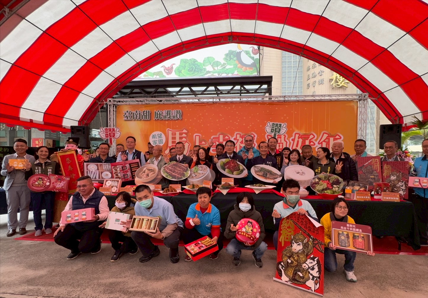 迎接新曆開端與農曆歲末的交替之際,市政府勞工局於今(7)日辦理「馬上幸福過好年—台南庇護年節禮」行銷記者會。因應即將到來的金馬年,市府攜手轄內7家庇護工場,推出多款精美年節禮盒與開運年菜。市長黃偉哲、勞動部勞動力發展署雲嘉南分署許慧香副分署長及五大總工會代表皆親自出席,共同守護弱勢就業,呼籲社會大眾以實際行動訂購支持,傳遞溫暖與愛。