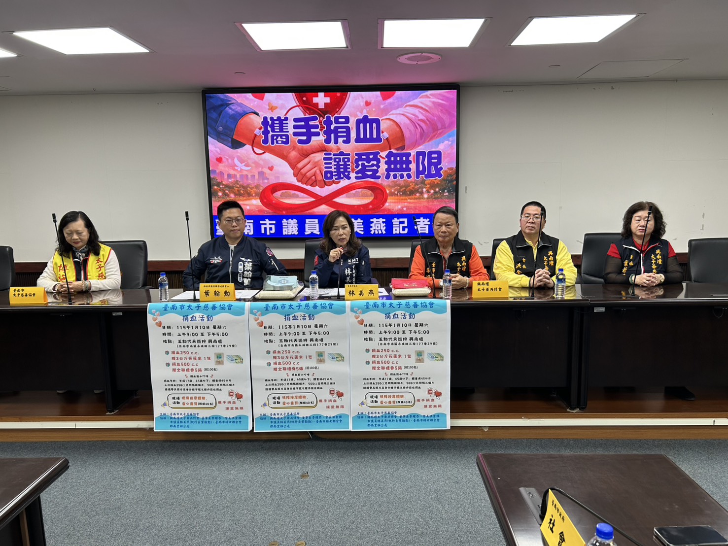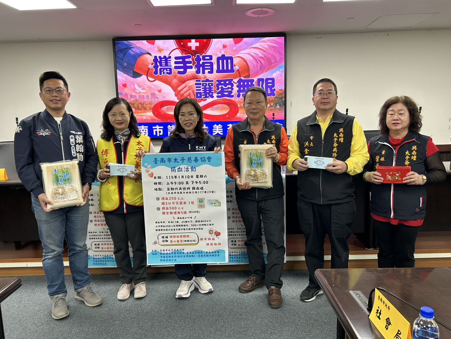 台灣各地血庫都呈現血荒的情況,台南市尤其明顯,定期舉辦捐血活動的台南市太子慈善協會特地加碼,將在1月10日舉辦捐血活動,市議員林美燕10日號召響應,希望各界人士踴躍挽起衣袖,用實際行動來紓緩血荒的危機,讓社會充滿愛與關懷。