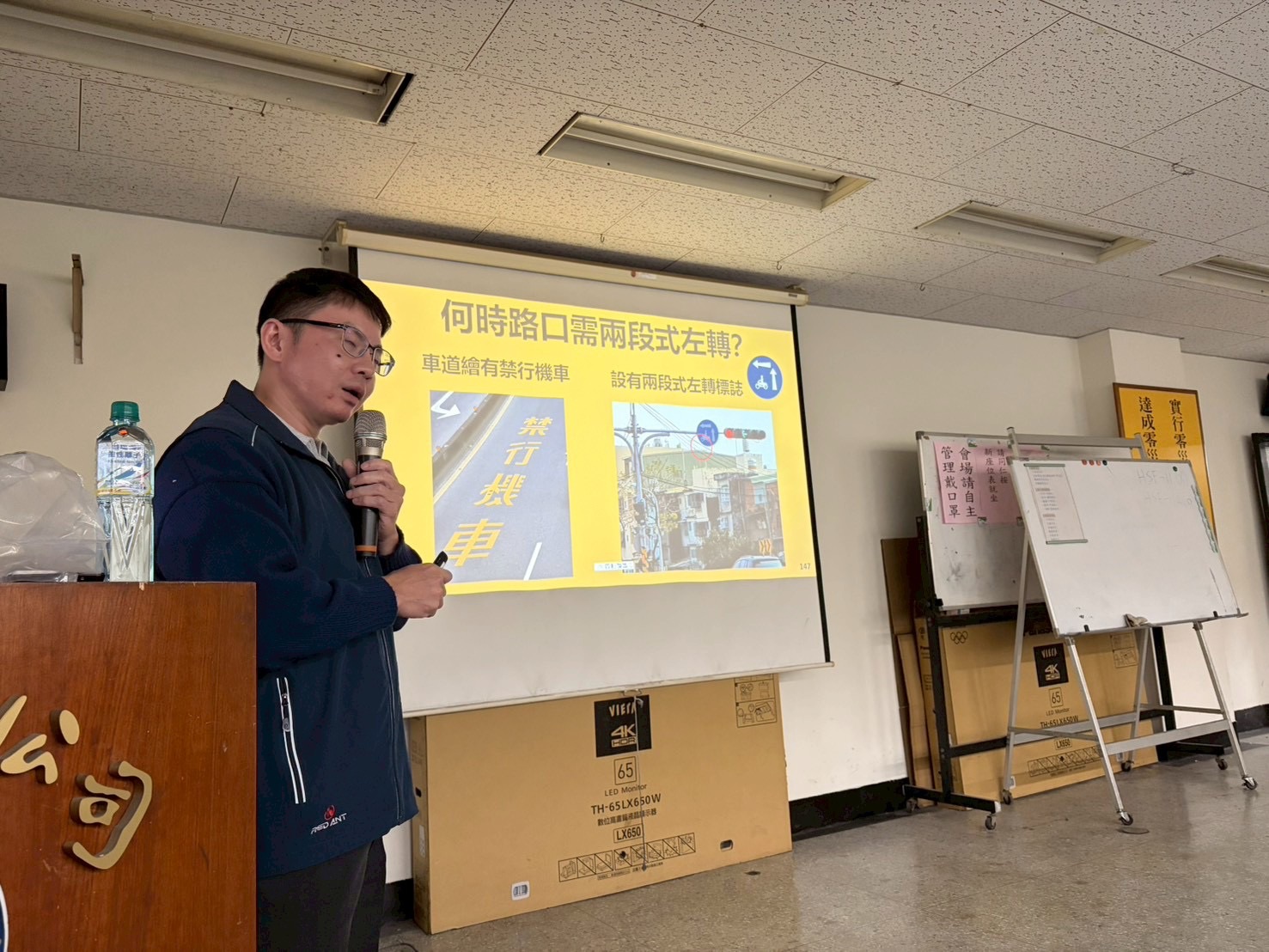 {記者黃宣翰/台南報導}為強化企業員工對交通安全的重視,台南市警察局交通警察大隊隊員本周前往台灣電力公司台南區營業處,舉辦交通安全宣導課程,聚焦「防禦駕駛技巧」,並從駕駛人的視角出發,說明如何運用防禦性駕駛技巧,提升用路安全意識,減少意外事故發生的風險。