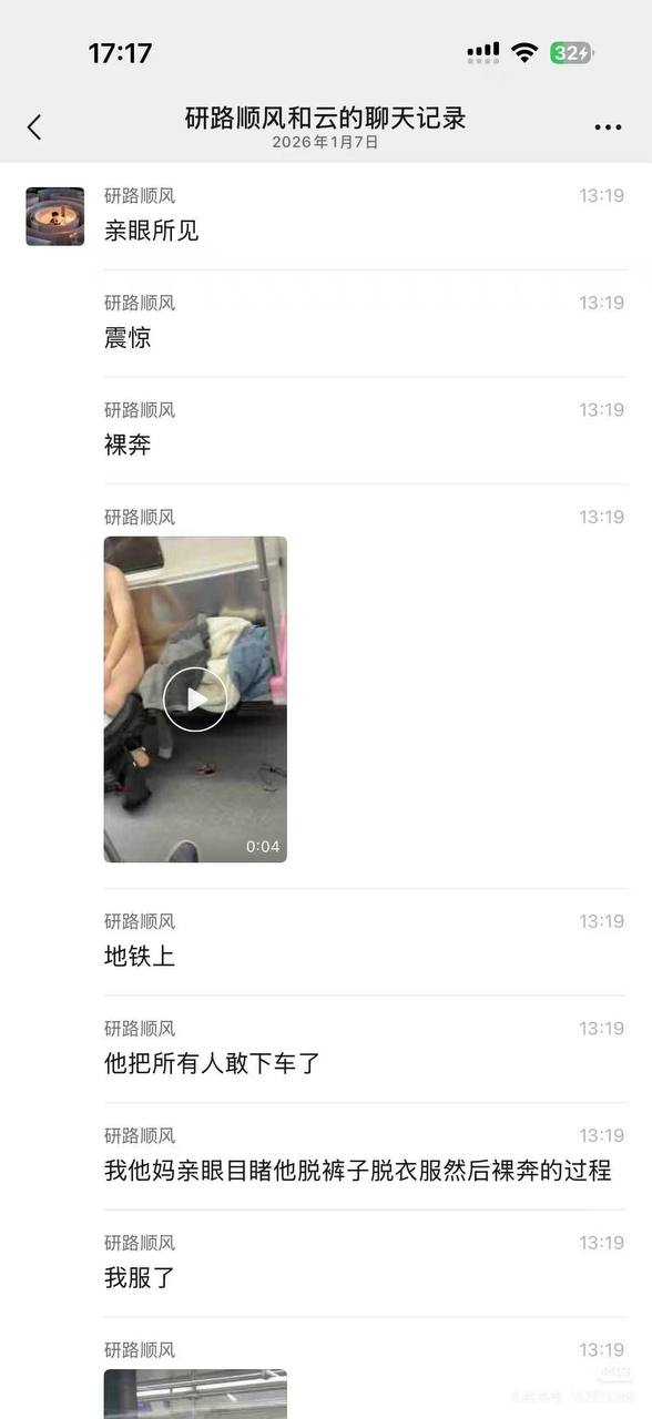 中國傳有男子搭地鐵在車廂裸奔,影片在網路上瘋傳。