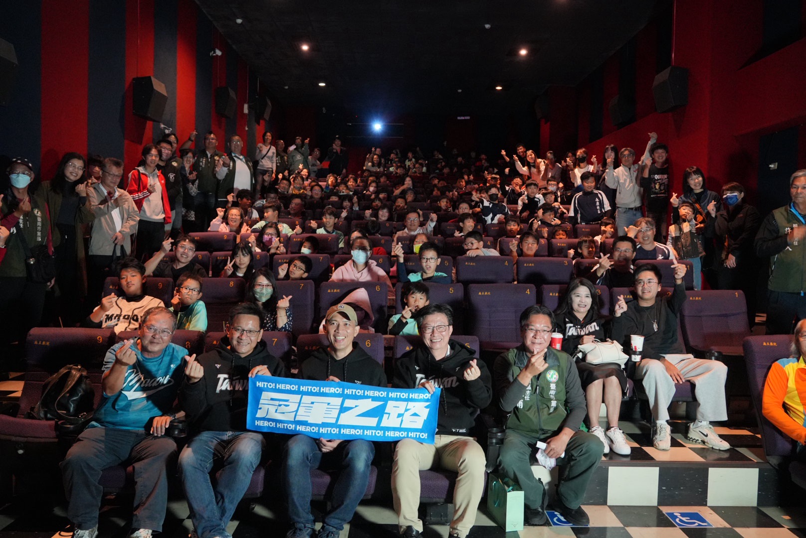 冠軍精神向下扎根 溪北溪南小球員齊聚麻豆戲院為台灣隊應援