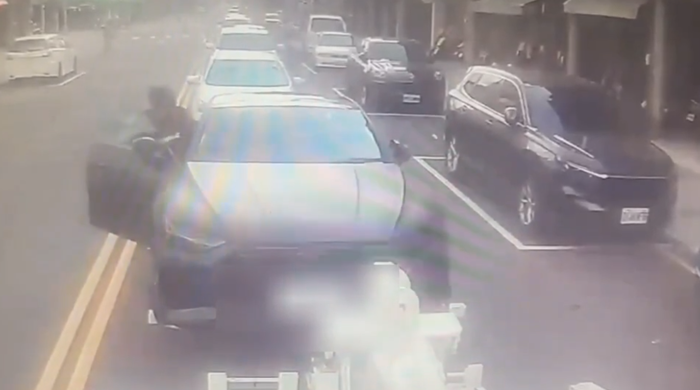 苗栗男子車輛違停被拖吊,竟一路跟著拖吊車趁停車時撕掉封條鑽入車內。翻攝畫面