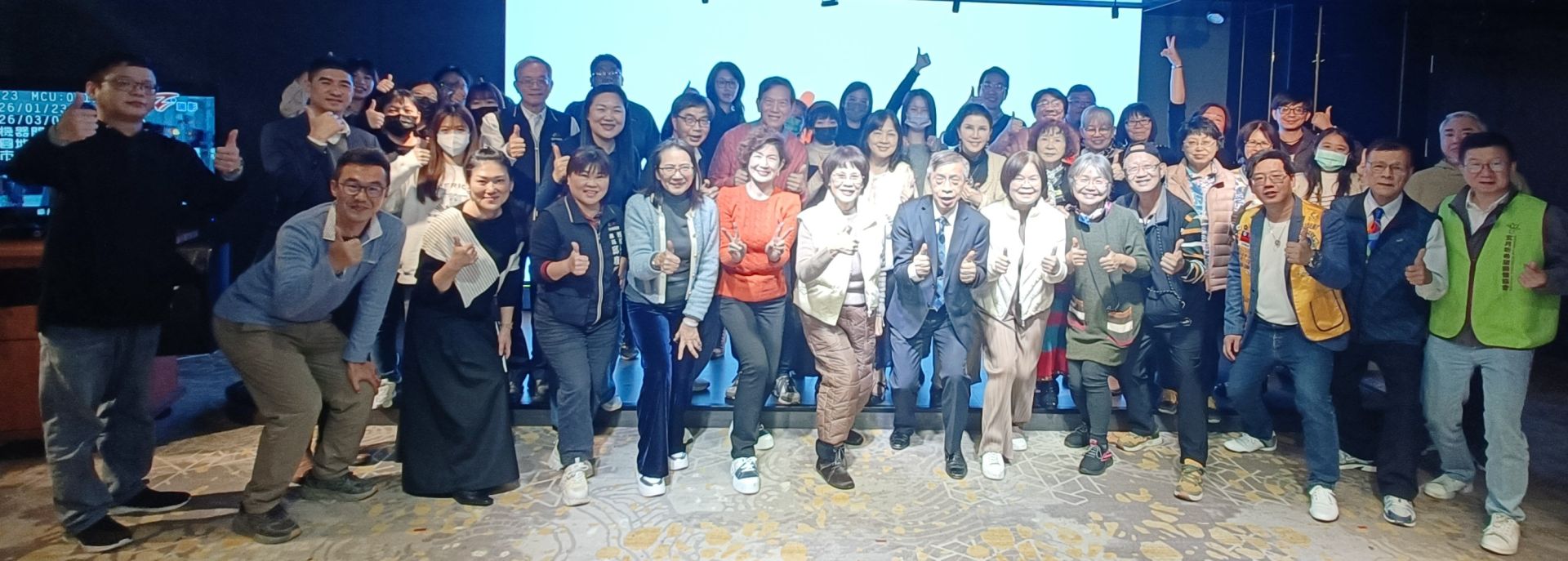 肯納基金會「115年感恩餐會」圓滿成功,現場匯聚來自獅子會、扶輪社及各界公益夥伴。眾人齊比讚手勢,象徵社會各界對肯納兒堅定不移的支持與守護,氣氛溫馨熱絡。(圖 / 覞傳媒 記者 劉聿豐 攝)