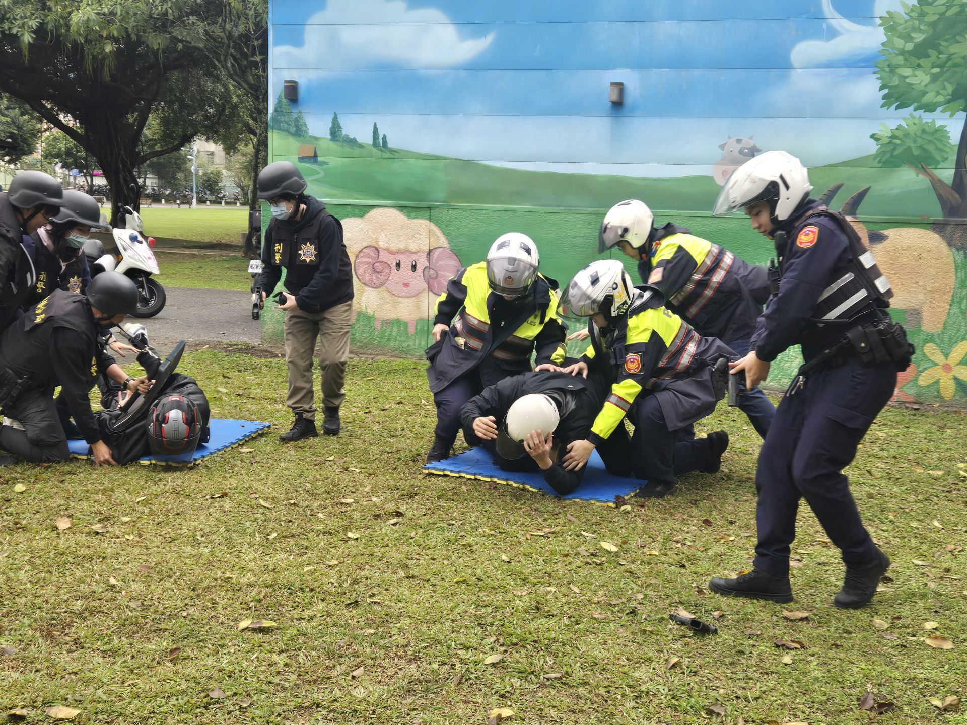 演練制壓制逮捕搶匪。翻攝畫面