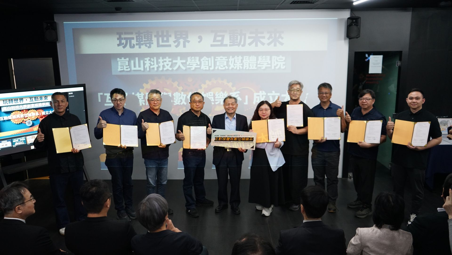 ▲互動媒體與數位娛樂系在各界貴賓的支持下正式成立,並進行啟動儀式。(圖/崑山科大提供)