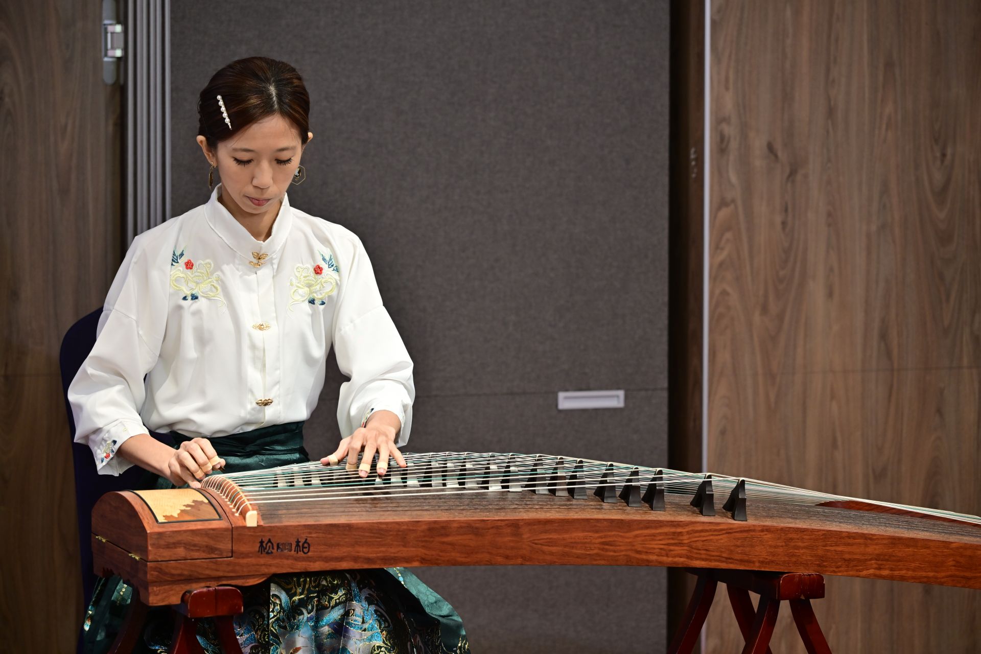 ▲115年「茶韻峨眉」湖畔春季茶會宣傳活動現場,古箏展演將於湖畔登場營造茶境。(圖/參山處提供)