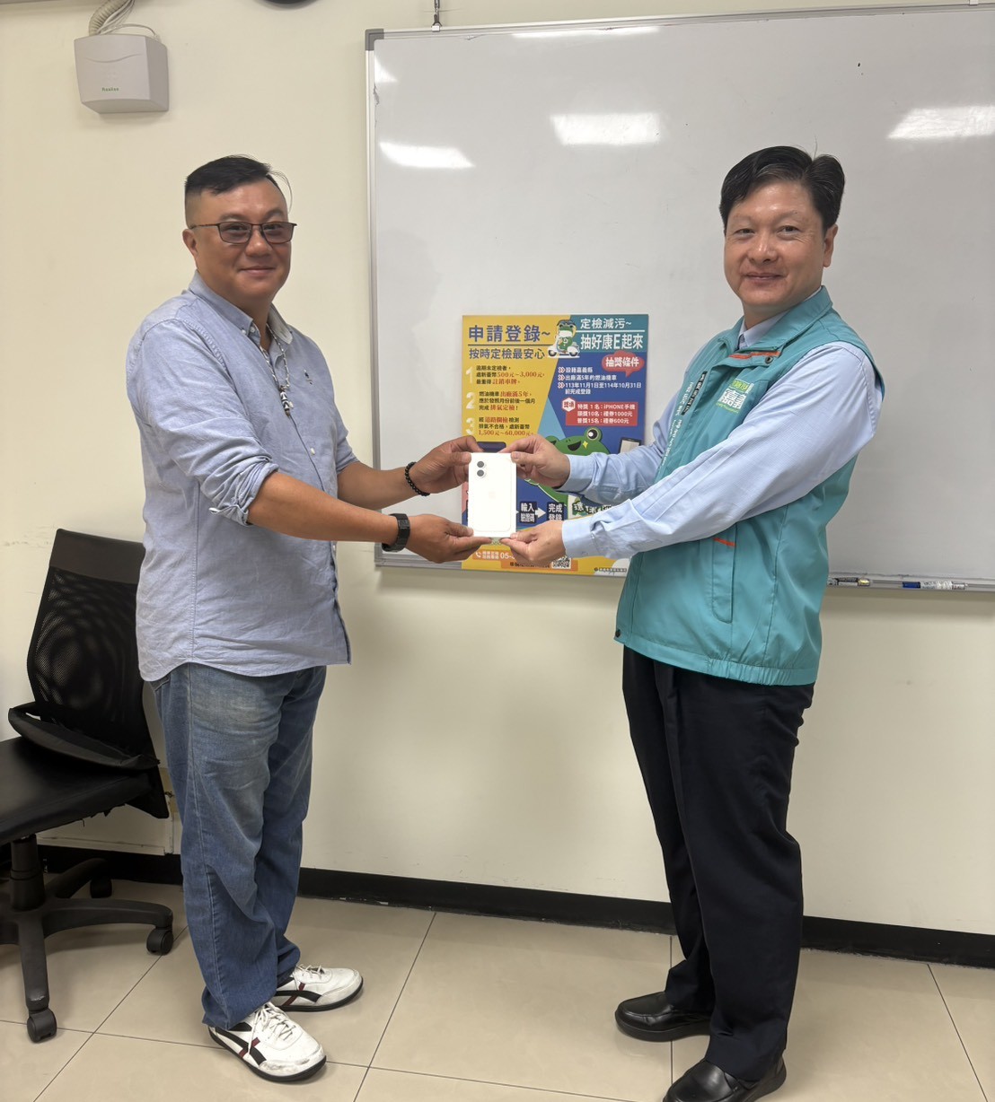 為響應機車定檢E化及淨零減污政策,嘉義縣自110年起建置機車排氣定檢簡訊通知系統(https://reurl.cc/6NVA05),截至目前已登錄7萬9,000餘筆,為鼓勵民眾主動申請簡訊通知,環保局每年規劃抽獎活動,今年最大獎項為iPhone 16,日前順利抽出手機及禮券得獎者,獲獎名單已公布在環保局網站及臉書粉絲專頁。
